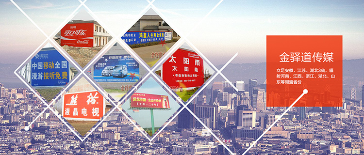 合肥金驛道廣告有限公司作為安徽省專營全國墻體廣告制作發布業務的一線品牌傳播公司---,10多年的運作經驗沉淀和積累及優化管理,不斷創新超越自我、發展壯大!目前組織管理幾十支訓練有素、經驗豐富的專業墻體廣告施工隊伍,秉承高品質服務、規?;陌l展宗旨,立足安徽、江蘇、湖北3省,輻射河南、江西、浙江、湖北、山東等周遍省份,主要負責安徽墻體廣告,合肥墻體廣告,安徽墻體廣告,墻體噴繪等具備多省份同時大規模運作墻體廣告業...